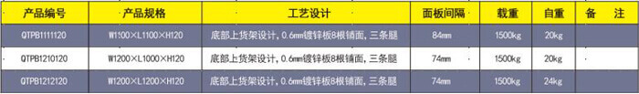 產(chǎn)品名稱:輕型B型鍍鋅托盤 產(chǎn)品編號(hào):QTPB1210120 產(chǎn)品規(guī)格:W1200×L1000×H120 托盤主孔:100mm 托盤側(cè)孔:80 mm 產(chǎn)品自重:20kg 產(chǎn)品靜載:800kg 產(chǎn)品動(dòng)載:600kg 上貨架載:300kg 產(chǎn)品配置:采用寶鋼鍍鋅板軋機(jī)成0.6*10*85多筋骨面板 10根,以間隔84mm 和6根板做腿+12個(gè)立撐 組成。 產(chǎn)品用途:廣泛用于酒水、食品、化工、電子等大量物品 倉(cāng)儲(chǔ)與周轉(zhuǎn)。本結(jié)構(gòu)為上貨架設(shè)計(jì)。